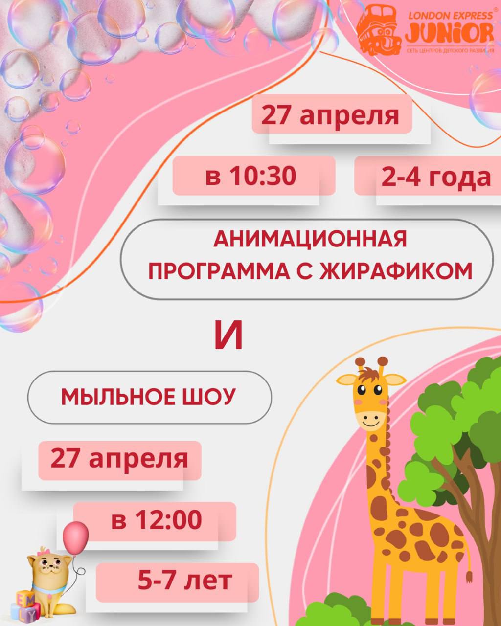 - 🦒 Анимационная программа: веселые игры, конкурсы, танцы и сюрпризы от наших зажигательных аниматоров!